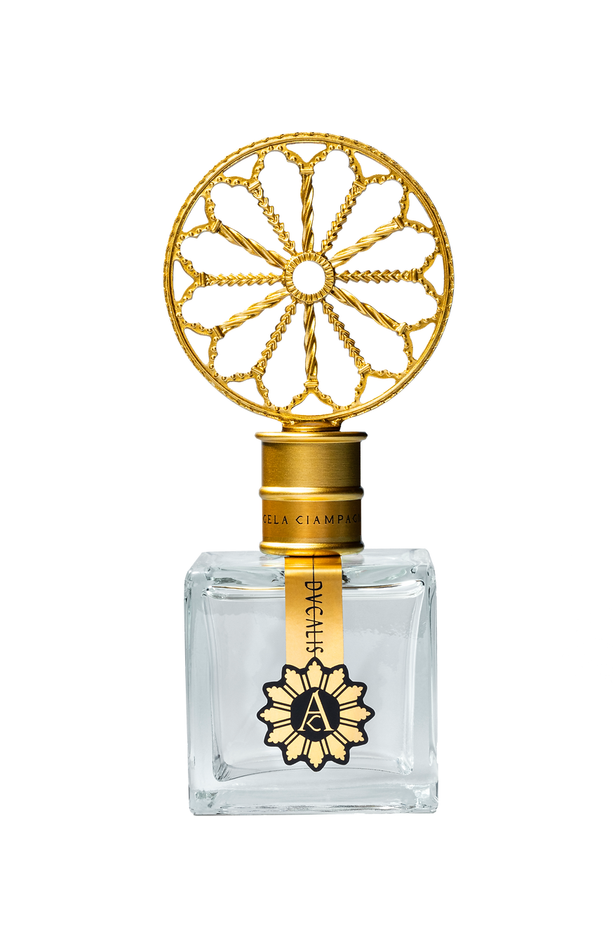 يفتتح عطر دوكاليس برائحة ورد متبلة بجوزة الطيب، مُحلاة قليلاً، باهتة، قبل أن ينتقل إلى قلبه. مع دخول التركيبة إلى قلبها المبكر، تتلاشى رائحة الورد تدريجيًا، لتتحول في البداية إلى رائحة سويد ناعمة، بلمسة من البودرة الخفيفة، مُشبعة برائحة الإيلنغ إيلنغ والسوسن، قبل أن تتحول بعد لحظات إلى تناغم زهري خشبي شبه معدني حاد، صاخب، يتألق كنجم ساطع لا يتخلى عن مكانته حتى النهاية. خلال مرحلة الجفاف المتأخرة، يبقى التكوين خطيًا للغاية، بينما يبقى التناغم الزهري الخشبي شبه المعدني الحاد والثاقب كنجم ساطع، يخف قليلاً مع مرور الوقت.