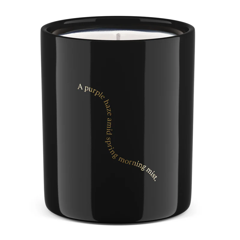 مصنوع من شمع الصويا النباتي، يفتتح العطر بنفحات منعشة من الحمضيات من البرتقال المر وزهر البرتقال، ليمنحك مقدمة مشرقة وهادئة. مع احتراق الشمعة، ينفتح القلب بباقة زهور من الليلك والياسمين والورد، مستحضرًا ضبابًا أرجوانيًا ناعمًا من الزهيرات العائمة في هواء الصباح الباكر. تضفي نفحات القرنفل والهليوتروب والإيلنغ إيلنغ لمسة من الدفء والفضول، لتضفي على الروائح الزهرية الرقيقة لمسة من التوابل والحلاوة الكريمية.